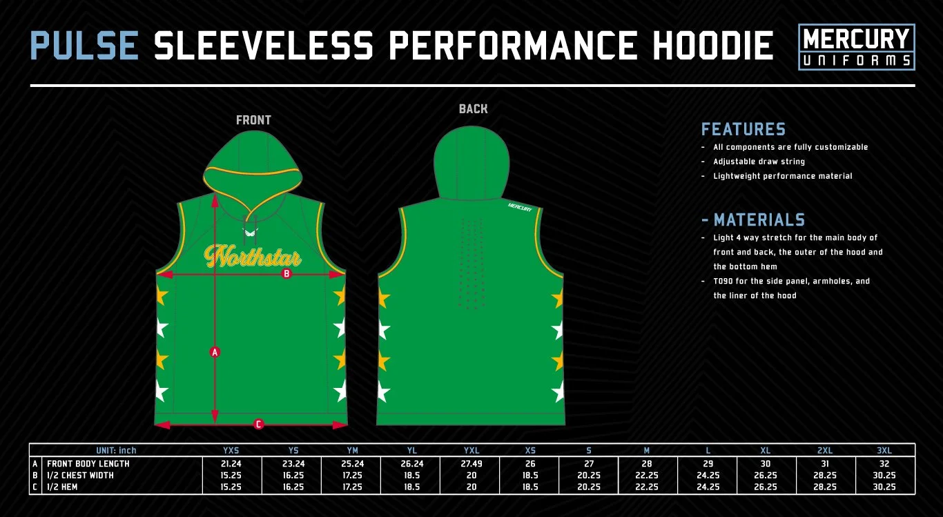 The Pulse Sleeveless Performance Hoodie is a fully customizable, high‑performance sleeveless hoodie designed for athletes and coaches who demand lightweight comfort, breathability, and style. Built for warm‑ups, pregame routines, post‑game wear, and sideline use, this sleeveless performance hoodie offers versatility across sports and seasons.